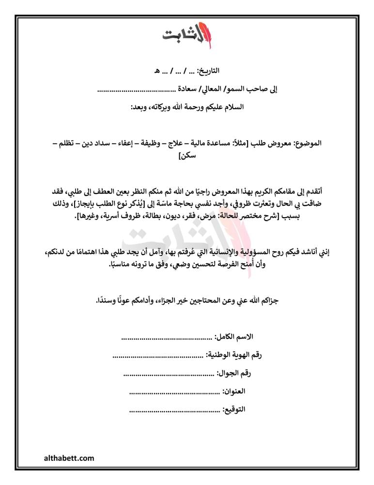 إذا كنت بحاجة إلى كتابة معروض للحصول على وظيفة، أو للحصول على مساعدة مالية، نحن نقدم لك خدمة كتابة المعاريض بمختلف أنواعها بطريقة سلسة ومنظمة.