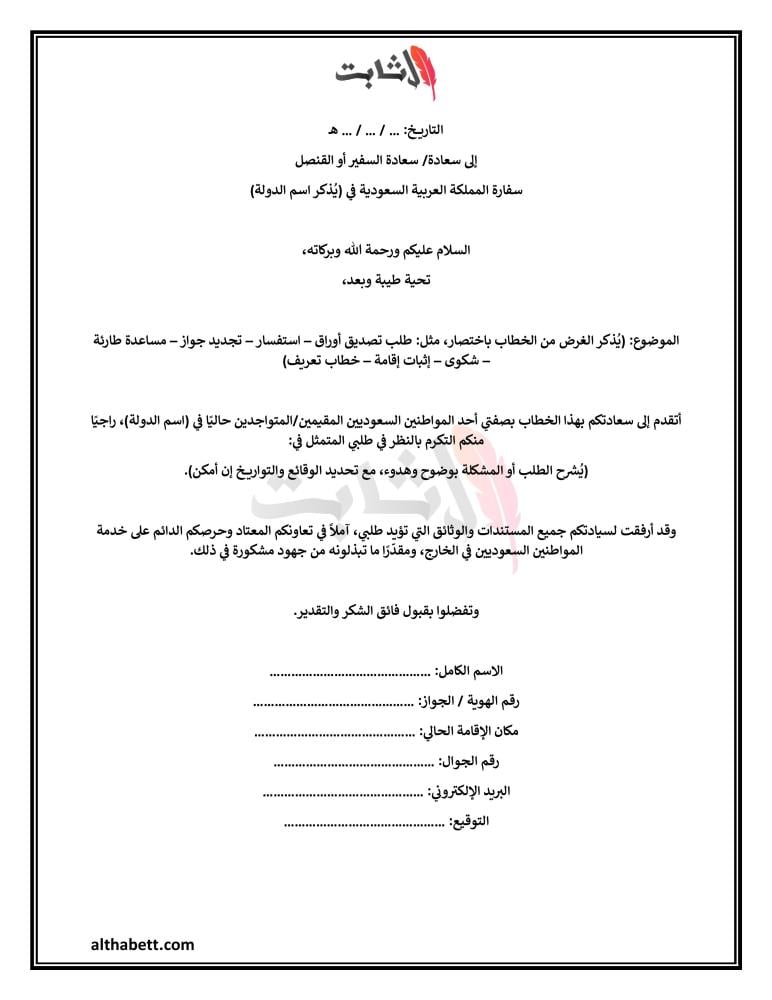 عناصر صيغة خطاب موجه للسفارة السعودية