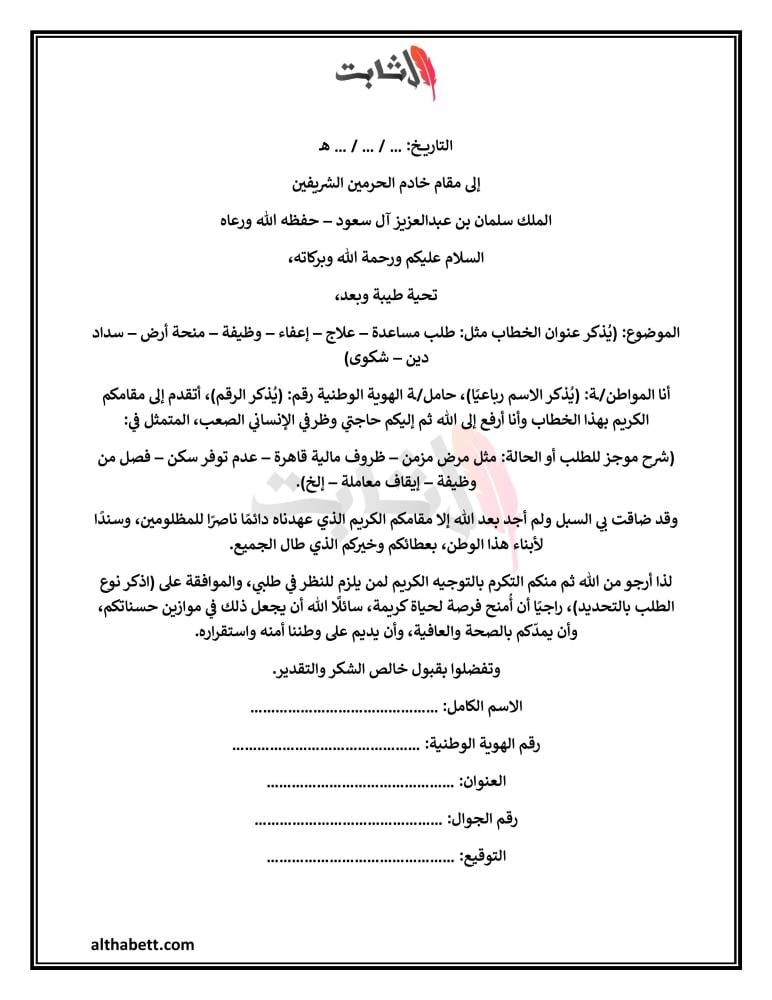 . كيف أطلب خدمة كتابة صيغة خطاب موجه لخادم الحرمين الشريفين؟