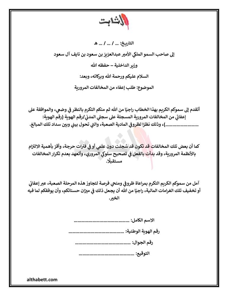 متطلبات خدمة طلب إعفاء من المخالفات المرورية: