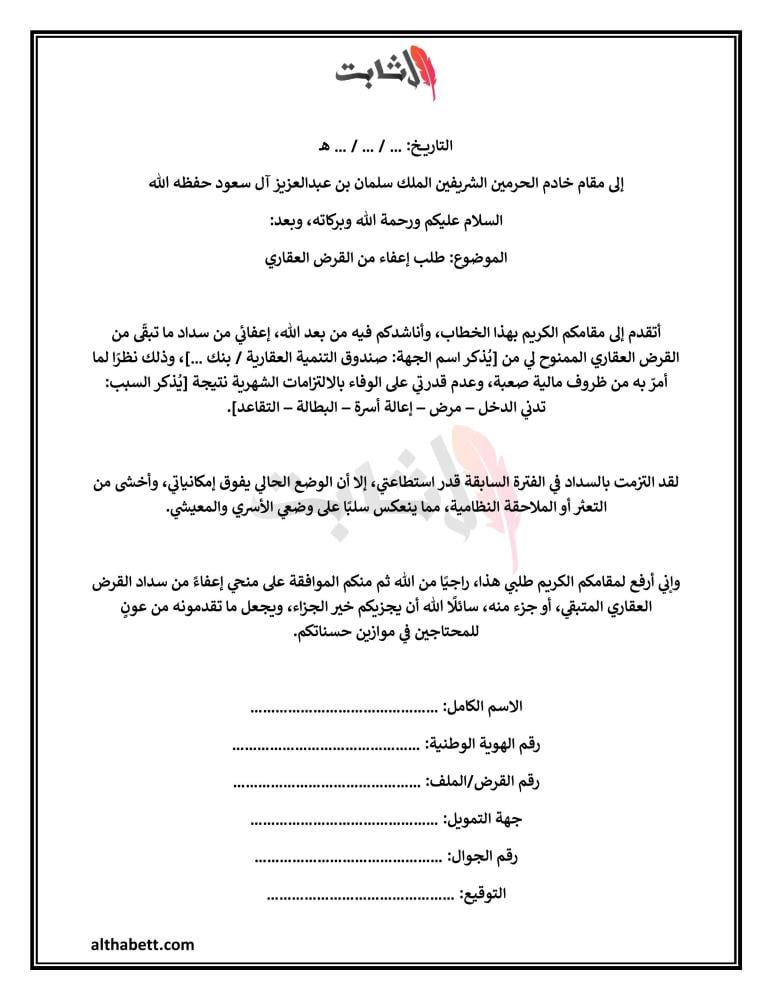 · طلب الإعفاء: اطلب بوضوح الإعفاء من القرض أو تخفيض الأقساط.