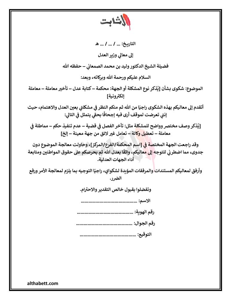 مميزات خدمة كتابة شكوى لوزير العدل من آل ثابت