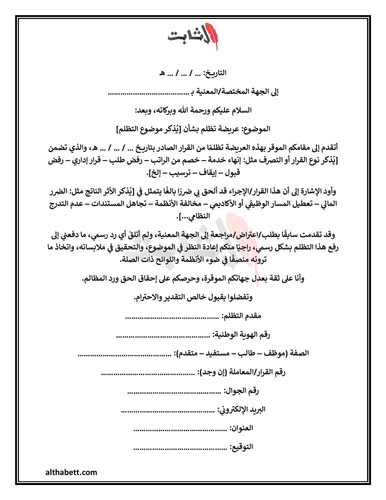 هل تعرضت لظلم إداري أو قانوني وتحتاج إلى طريقة رسمية لتقديم اعتراضك؟