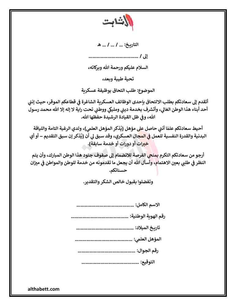 للمزيد اقرأ أيضًا: كيف اكتب معروض طلب وظيفه عسكرية