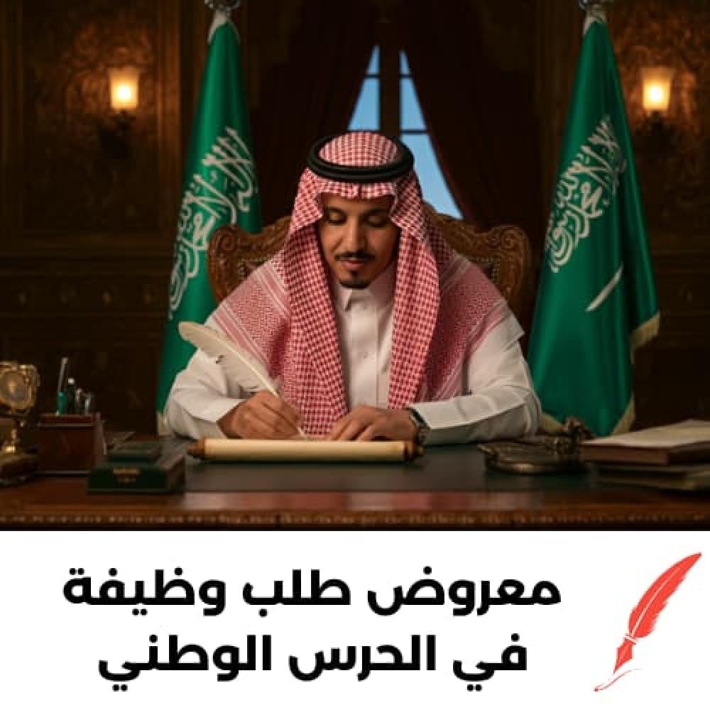 - صياغة مؤثرة ومقنعة تبرز احتياجك للوظيفة ومؤهلاتك، مع استخدام لغة رسمية وواضحة تناسب التقديم للحرس الوطني.