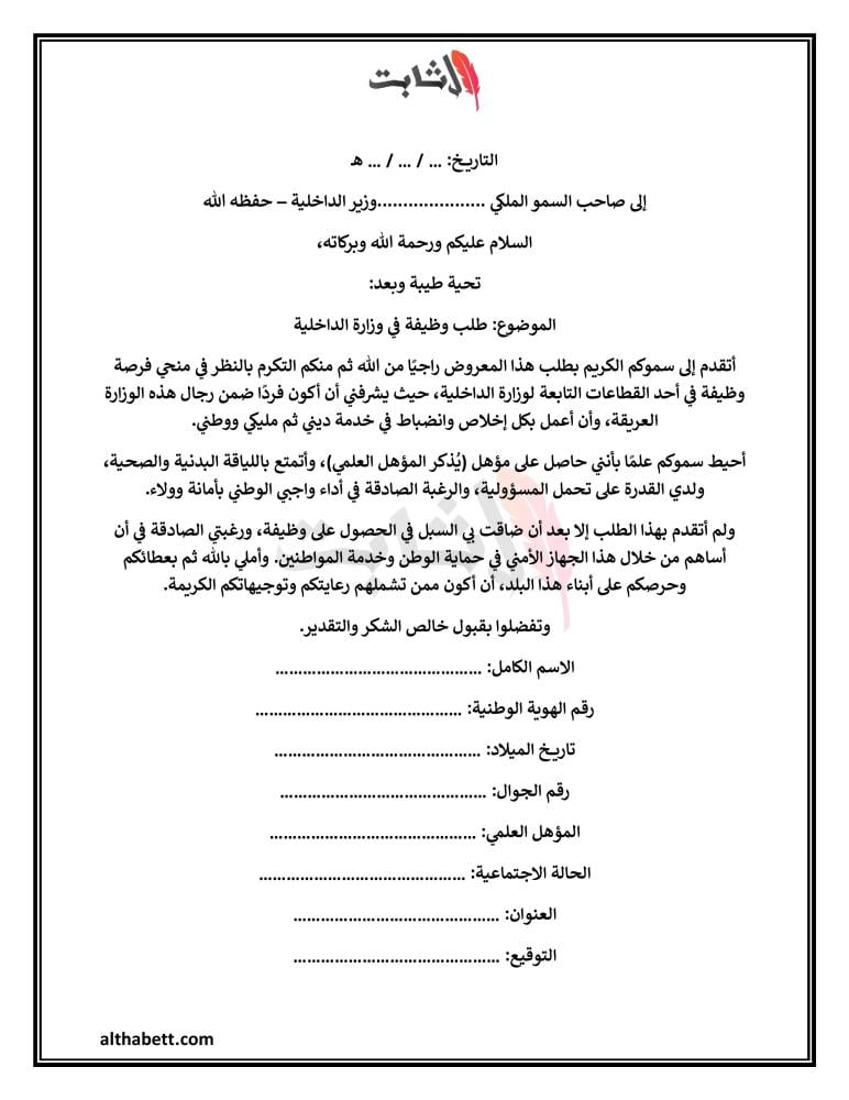 هل لازم يكون معروض طلب وظيفة في وزارة الداخلية بصيغة رسمية معينة تقبلها الوزارة؟