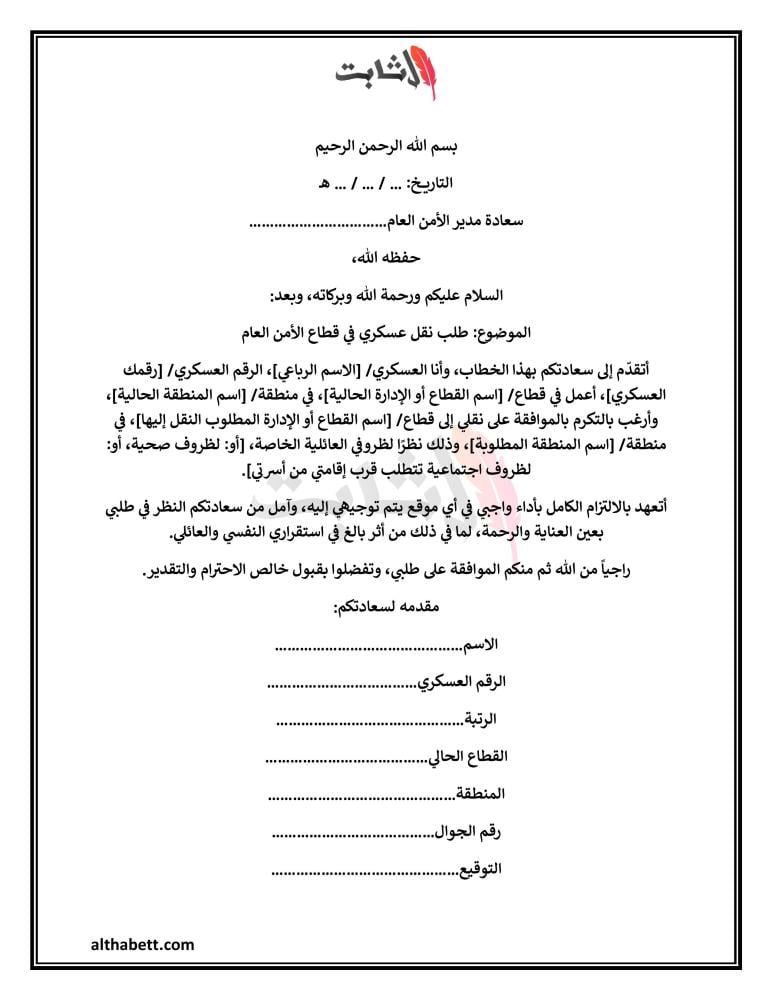 مميزات كتابة نموذج معروض نقل عسكري الأمن العام من خلال آل ثابت